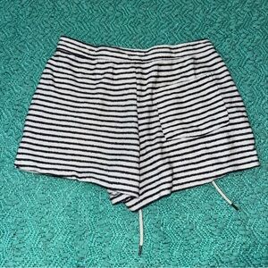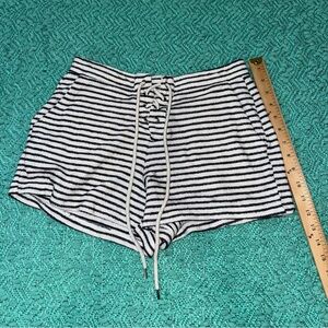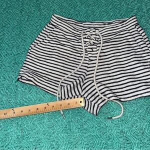 These high-waisted shorts from Aerie feature a striking Navy and white stripe pattern, perfect for a casual summer look. The lace-up front detail adds a trendy touch, while the lightweight fabric ensures comfort and style. Ideal for a day out, these shorts offer a classic nautical-inspired design.