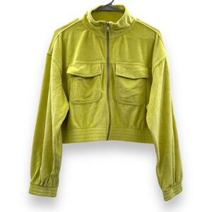 Aerie Neon Green Yellow Corduroy Full Zip Long Sleeve Bomber Jacket Sz M NEW