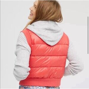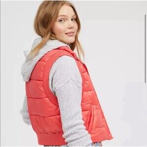 Aerie OFFLINE Large Calypso Red Puffer Vest Button Snap Closure Pockets NWOT
