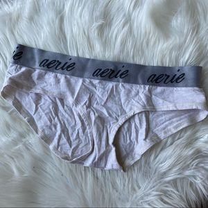 Aerie Oatmeal and Gray Varsity Band Boy Brief Panties