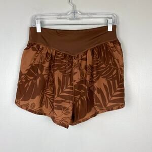 Aerie Offline Active Shorts Brown Floral Spandex Short Lining High Rise Large