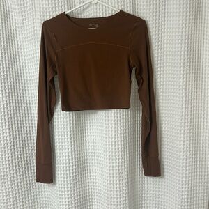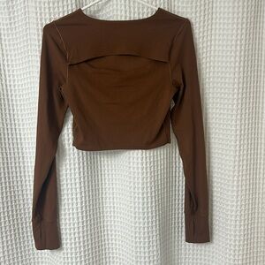 Aerie Offline Brown Real Me Long Sleeve Cutout Back Crop Athletic Top size M