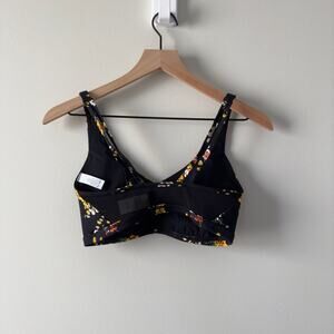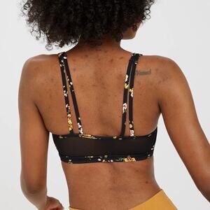 Aerie Offline Goals Plunge Sports Bra True Black Floral Mesh Back Strappy Active