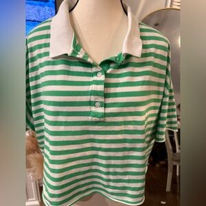 Aerie Offline Green and White Striped Women's Oversized Crop Top