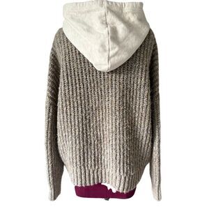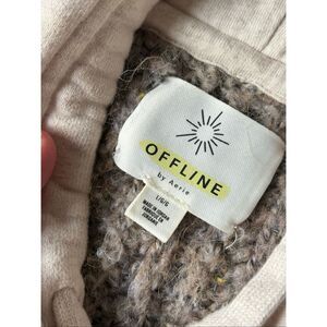 Aerie Offline Knit Hooded Pullover Sweater size L Tan Cream Gray