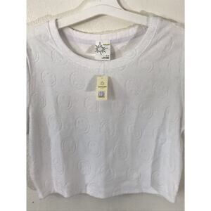 Aerie Offline NWT smiley face print white terry cloth crop top size Medium