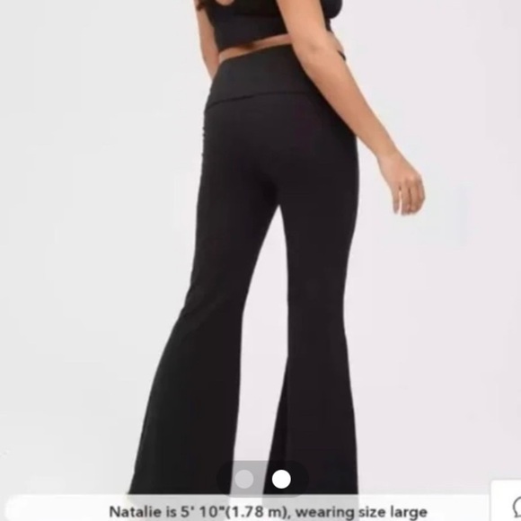 Aerie Offline OG Super Flare High Rise Fold Over Leggings Black Medium Long NWT