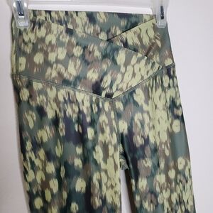Aerie Offline Olive Green Printed Shine Crossover High Rise 7/8 Leggings