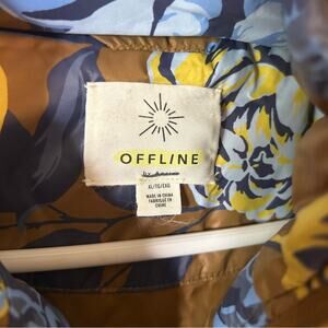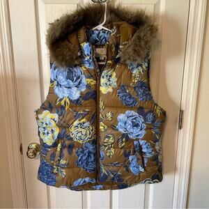 Aerie Offline Puffer Vest Floral Print Detachable Hood Faux Fur Trim Size XL