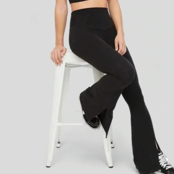 Aerie Offline Real Me Xtra Flare High Rise Front Split Hem Black Legging