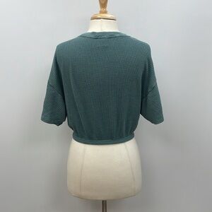 Aerie Offline Ribbed Knit Short Sleeve Crewneck Crop Shirt Teal Small