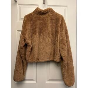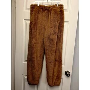 Aerie Offline Sherpa Cropped Jacket Pants Set Womens Large Soft Cozy Brown