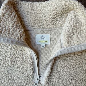 Aerie Offline Sherpa Cropped Quarter Zip Soft Oat Women's Size M
