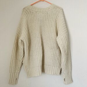 Aerie Offline Sweater Women M Cream Oversize Chunky Knit Thumb Holes Cozy Preppy