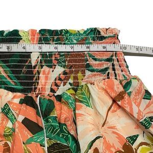 Features and details: pull-on design, smocked waist, pockets, lined, tropical print allover, lightweight
