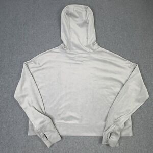 Aerie Offline Velour Cropped Gray Pullover Long Sleeve Hoodie Women's Size M