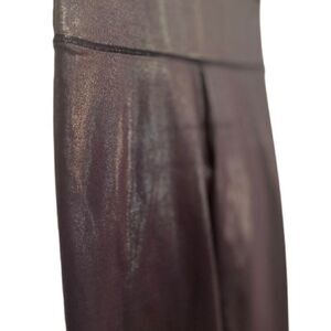 Experience the ultimate in comfort and style with these Aerie purple leggings with a faux leather look. Crafted from a smooth, stretchy fabric, they provide a sleek, form-fitting silhouette. The wide waistband offers a secure and flattering fit, perfect for any activity.