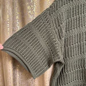 Aerie Olive Green Crochet Knit Oversized Short Sleeve Sweater Small NWT