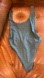 Stylish 80s-style, high cut and low back olive green one-piece swimsuit. NWT, never worn!
