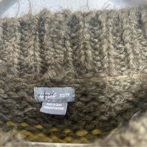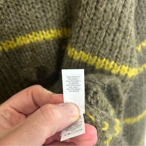 Aerie Olive Green Yellow Striped Wool Blend Crewneck Sweater Women’s Size XS