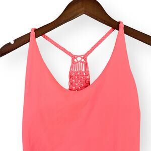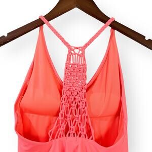 Aerie One Piece Crochet Back Swimsuit Womens Size M Coral Pink Braided Straps