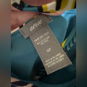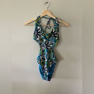Aerie One Piece Cutout Swimsuit Open Tie Back High Cut Cheeky Blue Pattern S