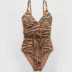 Aerie One Piece Cutout Zebra Print Wrap Tie Waist Swimsuit Size Medium New!!!