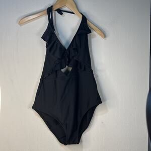 Aerie One Piece Swimsuit Size Small Ruffle Color Black Full Coverage Swimwear