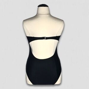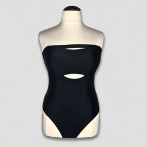 Aerie One Piece Swimsuit Strapless Bandeau Front Cut-Out Clasp Back Black sz XL