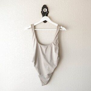 Dive into summer with this Aerie Women’s One Piece Swimsuit in size Medium. Designed with a classic scoop neckline, this swimsuit brings effortless style and comfort to pool days and beach getaways. The cheeky cut adds a flattering, modern edge, while the metal side ring accents give it a touch of unique detail. Perfect for lounging by the water or catching waves, this swimsuit combines Aerie’s signature comfort with a trendy, minimal aesthetic.