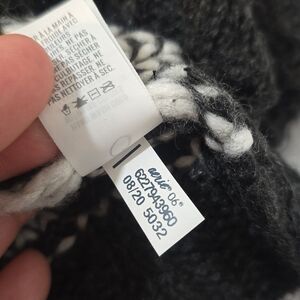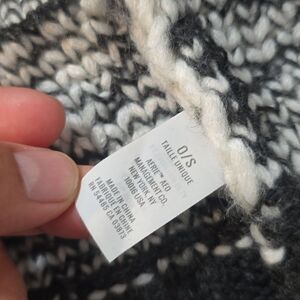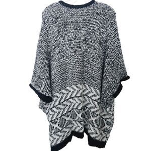 Aerie Open Front Poncho Tribal Pattern Pom Pom Neck Tie Black White One Size