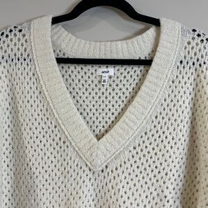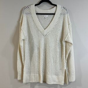 Aerie Open Weave Oversized V-Neck Sweater Cream size Small