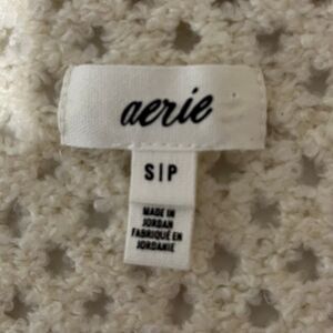 Aerie brand Open Weave Oversized V-Neck Sweater in a Cream color. Tag size Small. Underarm to underarm measurement is 21 inches. Total length from shoulder to hem is 28 inches. Oversized fit. Great preowned condition!