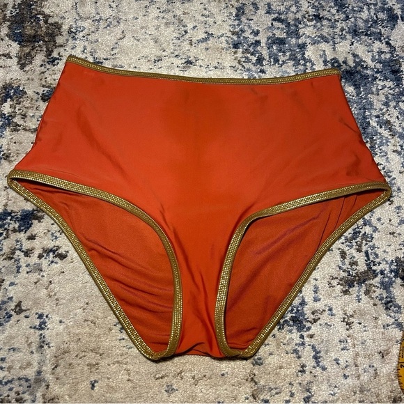 Aerie Orange & Gold Trim High Waisted Full Coverage Bikini Bottoms Size Large
