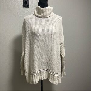 Aerie Oversized Chenille Cowl Neck Cream Knit Sweater Size Medium