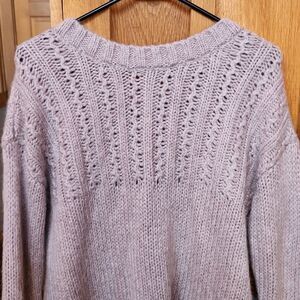 Aerie Oversized Crew Neck Open Back Open Knit Wool Alpaca Sweater, Small, Tan