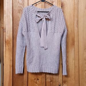 Aerie Oversized Crew Neck Open Back Open Knit Wool & Alpaca Bow Sweater, Small, Tan & Light Brown Variegated Knit in Great Condition.
