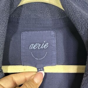 Aerie Oversized Crop Pullover Sweater Women Medium Blue Dolman Knit Activewear