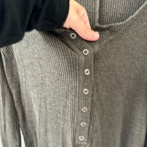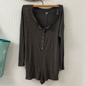 Aerie Oversized Green Ribbed Henley Snap Button Sleep Romper XS