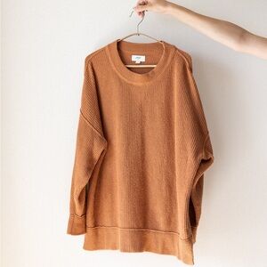 Stay stylish and comfortable with this cozy women's sweater in a warm orange hue. Perfect for any casual outing.