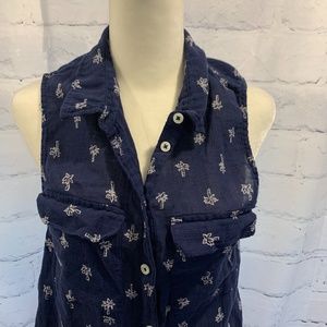 Aerie Palm Tree Navy Sleeveless Blouse Tropical S