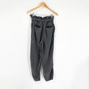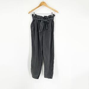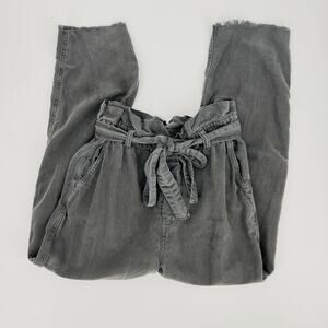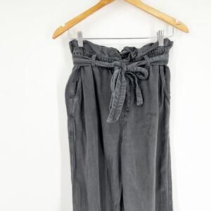 Aerie Paperbag Waist Pants Soft Twill Tie Waist Belt Gray Raw Hem Size Medium