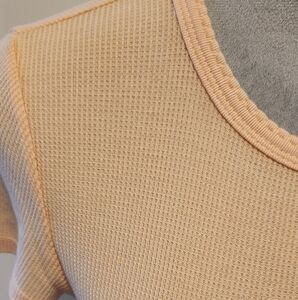 Elevate your wardrobe with this stylish Aerie peach short sleeve cropped top. Perfect for any occasion, this top offers comfort and elegance.