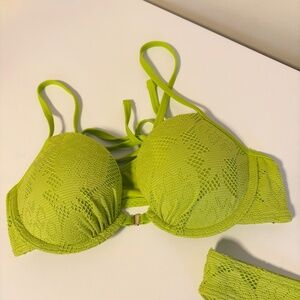 Aerie Perkier Push-Up Crochet Low Rise Bikini Matching Set Lime Green 32 C M
