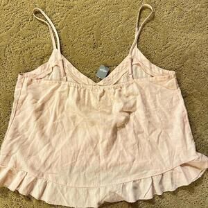 This Aerie camisole features a soft pink hue and a relaxed fit, perfect for a casual yet chic look. The ruffled hem adds a touch of femininity, while the lightweight fabric ensures comfort throughout the day. Ideal for layering or wearing on its own, this top is a versatile addition to any wardrobe.