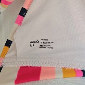 Aerie Pink and Navy Ruffled Longline Bikini Top