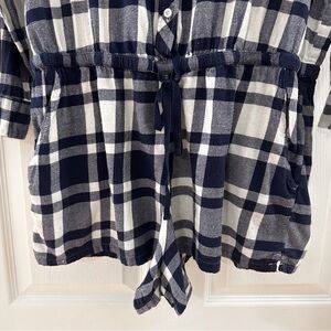 Aerie Plaid Flannel Button Front One Piece Pajama Romper Blue White. Size XL. Great pre-owned condition. Adjustable tie waistband. Functional buttons at front. Two front pocket at chest. Two side slit pockets at shorts. 100% cotton.