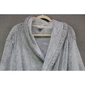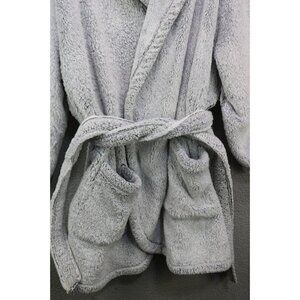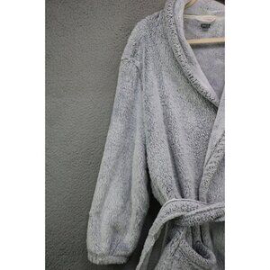 This is a Aerie Plush Faux Fur Belted Robe that is a size XXL. It is so soft!! It has pockets and ties in the front. It is 100% Polyester. Laying flat, it measures: Armpit to armpit-28" and the Length is 37". It is very nice and in great condition. I almost kept it myself.