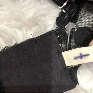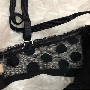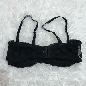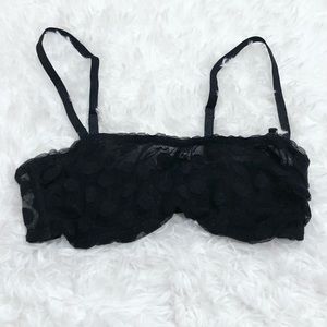 Aerie Polka Dot Mesh lace Soft Cup Bra Black 34B. Adjustable removable straps, silicone no slip lining. Sheer lace panels. No padding. Bandeau style. Good preowned condition. Supportive underwire
