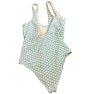Aerie Polka Dot Pique Scoop Cheeky One Piece Swimsuit XL Blue White Beach Swim